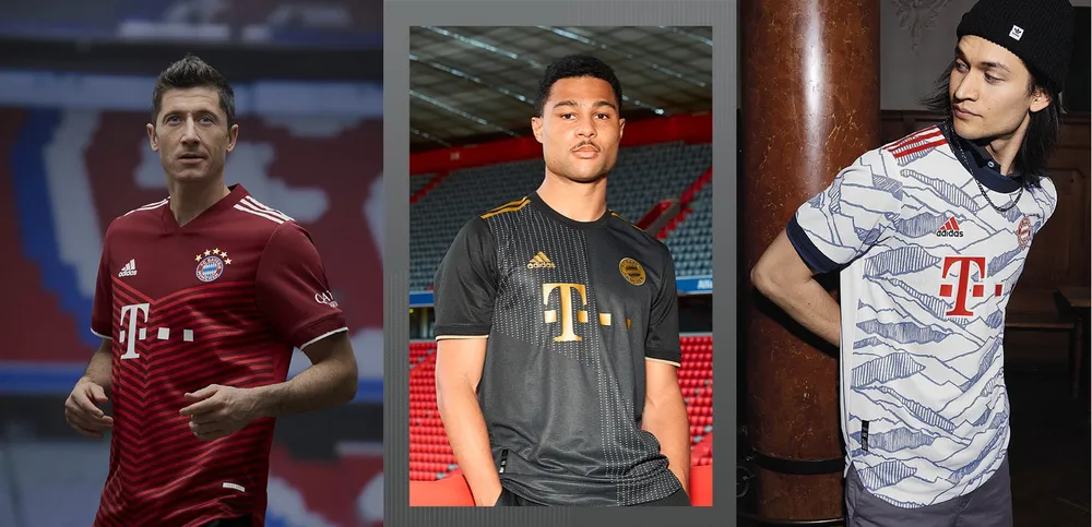 Áo đấu sân nhà FC Bayern Munich có màu đỏ sẫm truyền thống, nổi bật với 5 ngôi sao trên ngực áo - minh chứng cho chức vô địch Bundesliga thứ 30 của FC Bayern Munich, cùng với khẩu hiệu truyền thống "Mia san Mia" sau cổ áo. Mẫu áo đấu sân khách không chỉ là bộ mặt của câu lạc bộ mà còn đại diện cho nơi họ gọi là nhà, được lấy cảm hứng từ Munich Child - một biểu tượng của thành phố Munich. Áo đấu mới thứ 3 được lấy cảm hứng từ những ngọn núi ở Munich. Chiếc áo được thiết kế với tông màu trắng và xanh dương, tượng trưng cho nét văn hóa của xứ Bavarian - nơi nắm giữ những kỷ lục của đội bóng này. Mới đây mẫu áo này đã được ra mắt ở trận tranh Siêu cúp Đức đối đầu với Borussia Dortmund với chiến thắng 3 - 1 nghiêng về FC Bayern Munich.