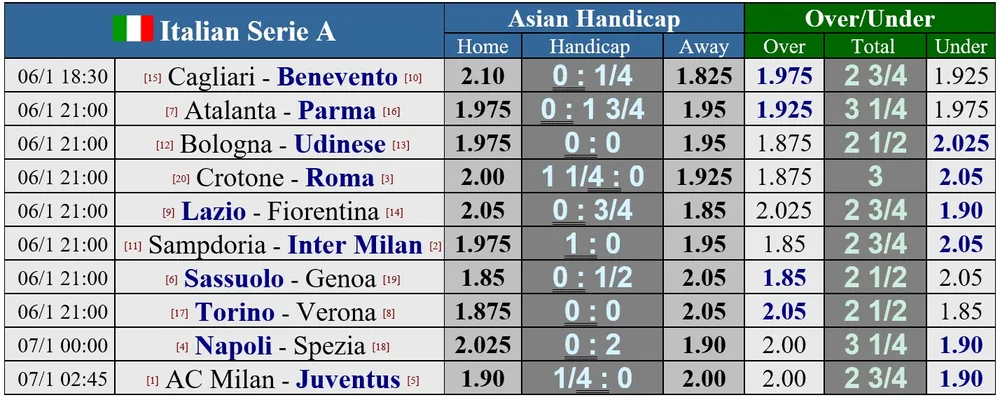 Vòng 16 Serie A sẽ diễn ra vào đêm mai với hàng loạt trận cầu chênh lệch như Roma gặp Crotone, Napoli gặp Spezia, nhưng điểm nóng vẫn là cuộc đua giữa bộ đôi thành Milan khi Inter viếng thăm sân Sampdoria, còn AC Milan sẽ tiếp đón nhà vô địch Juventus.