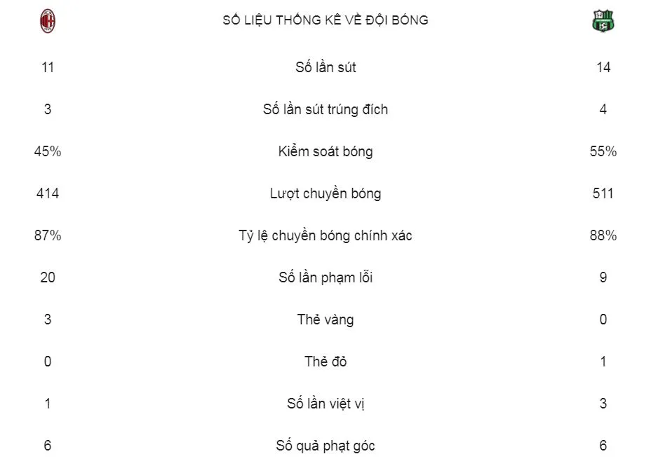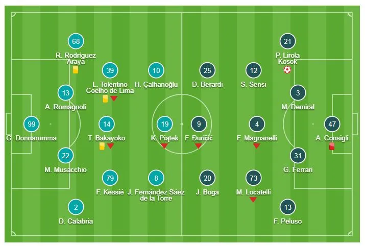 Chủ nhà AC Milan tiếp đối thủ Sassuolo đang xếp vị trí 11 nên phần nào nhập cuộc tự tin hơn nhưng bất ngờ đối thủ thi đấu quá kiên cường, gây không ít khó khăn cho hàng thủ Milan. Bàn thắng duy nhất trận đấu đến từ pha phản lưới nhà của hậu vệ Pol Lirola, thủ thành Consigli phải nhận thẻ đỏ khi dùng tay kéo Piatek.