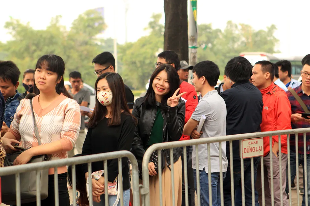 Người hâm mộ xếp hàng trật tự chờ nhận vé. Ảnh: MINH HOÀNG