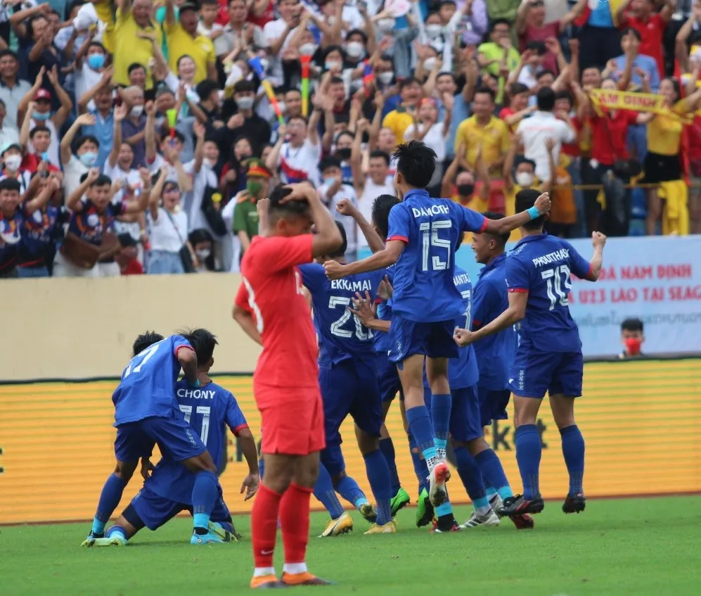 Các CĐV Nam Định ăn mừng bàn thắng của U23 Lào tại SEA Games 31