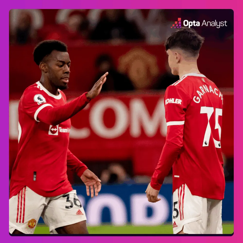 Chỉ ít cầu thủ tạo được tác động như Garnacho tại Premier League trước 21 tuổi, với 93 trận đứng thứ 12, vượt Rashford (85), Lampard (84), Ronaldo và Rice (82), Gerrard (73). Anh là cầu thủ Man United chơi nhiều trận nhất trước 21 tuổi, với trung bình 223 phút mỗi đóng góp bàn thắng, gần bằng Ronaldo (207) và nhỉnh hơn Saka (224), Lampard (417).