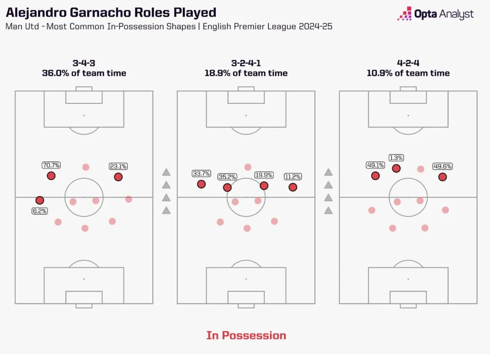 Khoảnh khắc định mệnh trong sự nghiệp của Garnacho tại Man United dễ dàng nhận ra. Vị trí của anh trở nên phức tạp khi Ruben Amorim được bổ nhiệm làm HLV vào tháng 11 năm ngoái.