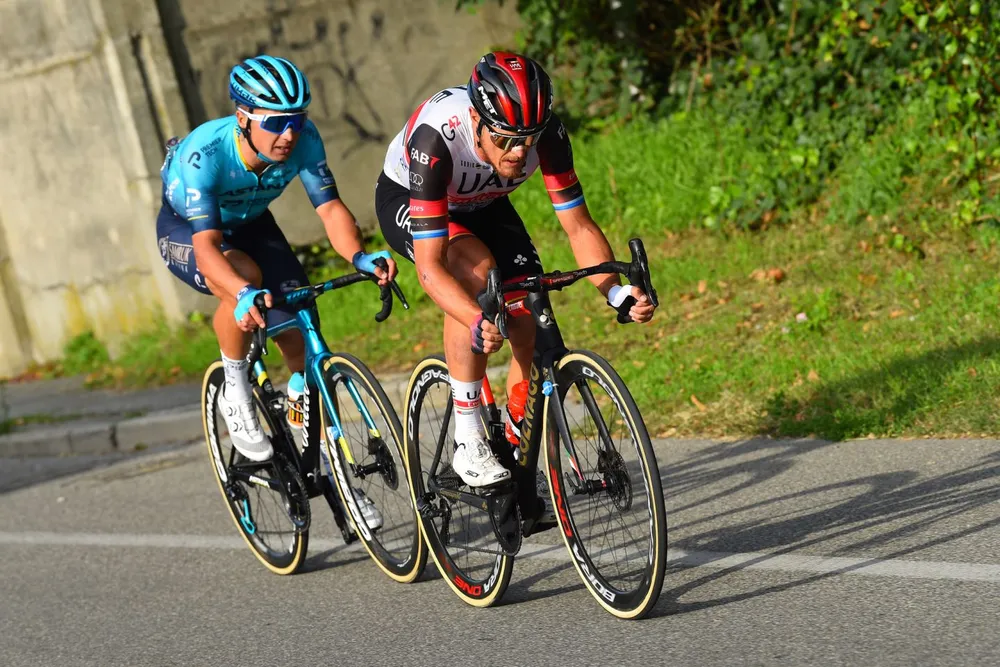 Ở cột mốc 11km cuối, Alexey Lutsenko tấn công kéo theo Matteo Trentin thoát khỏi nhóm đầu. Trên con đường bằng phẳng, bộ đôi này đã hợp sức “đào tẩu” bất chấp sự rượt đuổi của đối thủ. Ở nhóm sau, các tay đua còn lại đã bị nhóm của đội Alpecin-Fenix bắt kịp.