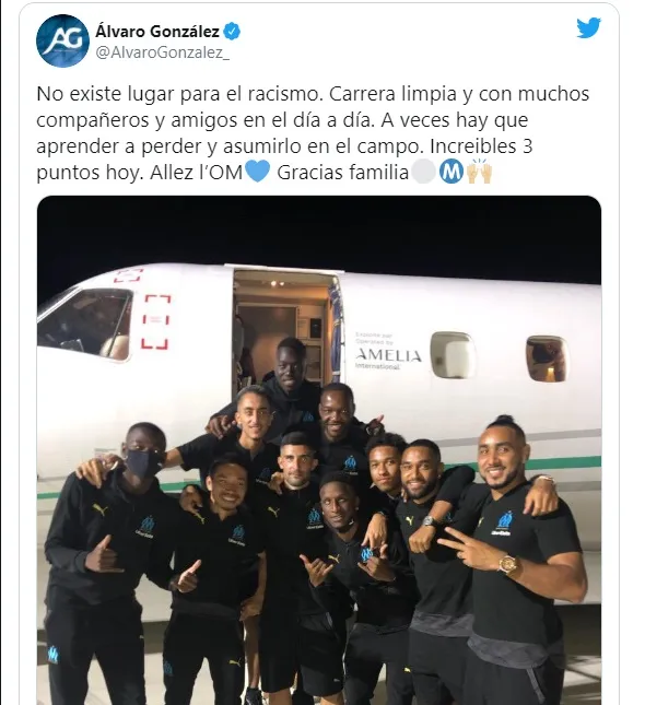 “Một sự nghiệp trong sạch và với nhiều đồng đội và bạn bè da màu ngày này qua ngày khác”. Bức ảnh Alvaro chụp chung với nhóm bạn toàn là người da màu cho thấy anh không hề là kẻ phân biệt chủng tộc. Và cầu thủ người Tây Ban Nha cũng không ngần ngại dạy đời ngôi sao Brazil: “Đôi khi bạn phải học cách thua và chấp nhận nó trên sân. Ba điểm ngày hôm nay thật đáng kinh ngạc. Nào, hãy cảm ơn gia đình OM”