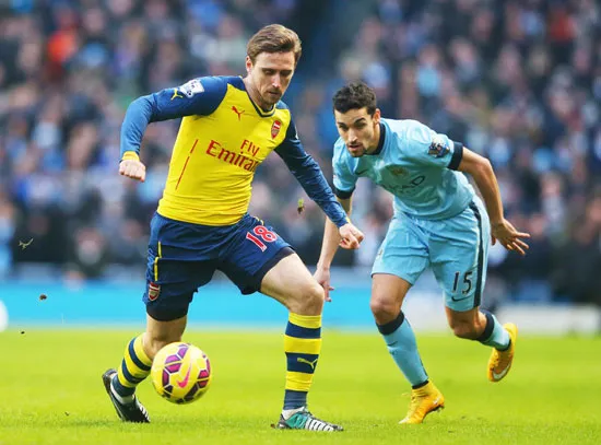 Monreal (trái) và Arsenal đã chiến đấu dũng mãnh tại Man.City.