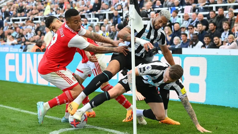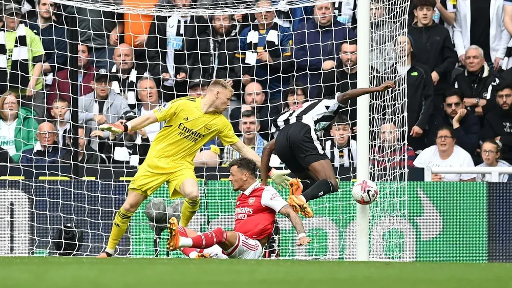 Thực tế là Arsenal đã chao đảo từ rất sớm khi Jacob Murphy sút bóng đập cột dọc chỉ sau 3 phút, tưởng chừng Newcastle được hưởng phạt đền khi cú sút của Bruno Guimaraes chạm cánh tay của Jakub Kiwior. Tuy nhiên, hậu vệ người Ba Lan đã được trọng tài cứu vớt, sau khi xem lại VAR, ông tin rằng bóng dường như trúng đùi cầu thủ trước khi chạm tay.