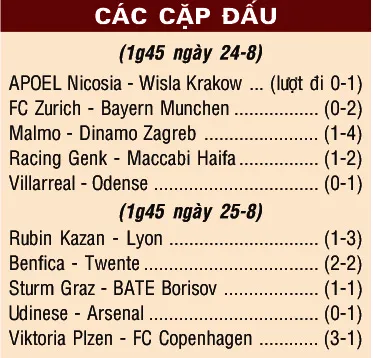 Benfica với thành phần... không có cầu thủ người Bồ Đào Nha nào ở lượt đi sẽ tiếp Twente trên sân nhà sau khi hòa 2-2 ở lượt đi. Maccabi Haifa sẽ cố bảo toàn tỷ số 2-1 trên sân Genk, nơi HLV Frank Vercauteren của họ đã bỏ đội chạy theo tiếng gọi đồng tiền của CLB Al Jazira (UAE). Hai vị trợ lý Pierre Denier và Hans Visser sẽ lãnh trọng trách giúp Genk lật ngược tình thế.