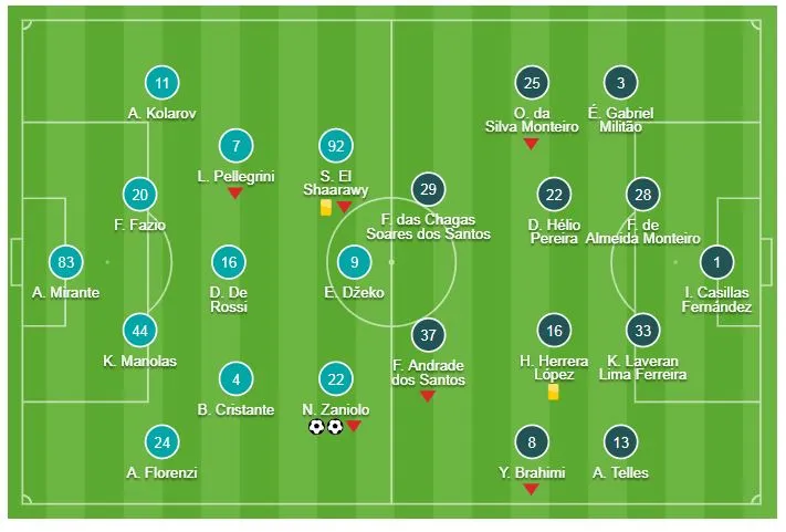 Chủ nhà Roma nhập cuộc chủ động nhưng đối thủ phòng ngự chặt, thế trận bế tắc. Phải đến phút 70, Dzeko kiến tạo cho Zaniolo mở tỷ số và sau đó Zaniolo cũng hoàn thành cú đúp, Porto cũng có bàn thắng rút ngắn tỷ số của Adrian. Thắng 2-1, Roma chưa an toàn ở trận lượt về và trận thắng tối thiểu cũng sẽ giúp Porto đi tiếp.