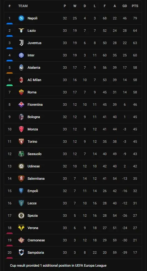 Atalanta: Marten Roon 32', Davide Zappacosta 48', Luis Muriel 54'