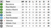 Bảng xếp hạng vòng 20-La Liga 2020: Barcelona lấy lại ngôi đầu từ Real Madrid Bảng xếp hạng quốc tế 20/01/2020 08:09