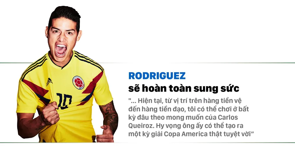 Tuy vậy, quay trở về tập luyện với ĐTQG, hòa mình, hít thở với bầu không khí thân quen của những đồng đội thân thương, Rodriguez đã khỏe khoắn rất nhiều, anh cảm thấy càng lúc càng tốt hơn và đã chơi đến 74 phút trong trận thắng mới đây trước Peru. Rodriguez lạc quan cho biết sau trận đấu, hướng về Copa America 2019: “Trong hiệp 2, tôi rất ổn, và tôi vẫn còn đến 8 ngày nữa để càng lúc càng khỏe khoắn hơn. Đây là lúc để chúng tôi thắng thứ gì đó cho đất nước. Hiện tại, từ vị trí trên hàng tiền vệ đến hàng tiền đạo, tôi có thể chơi ở bất kỳ đâu theo mong muốn của Carlos Queiroz. Hy vọng ông ấy có thể tạo ra một kỳ giải Copa America thật tuyệt vời”.
