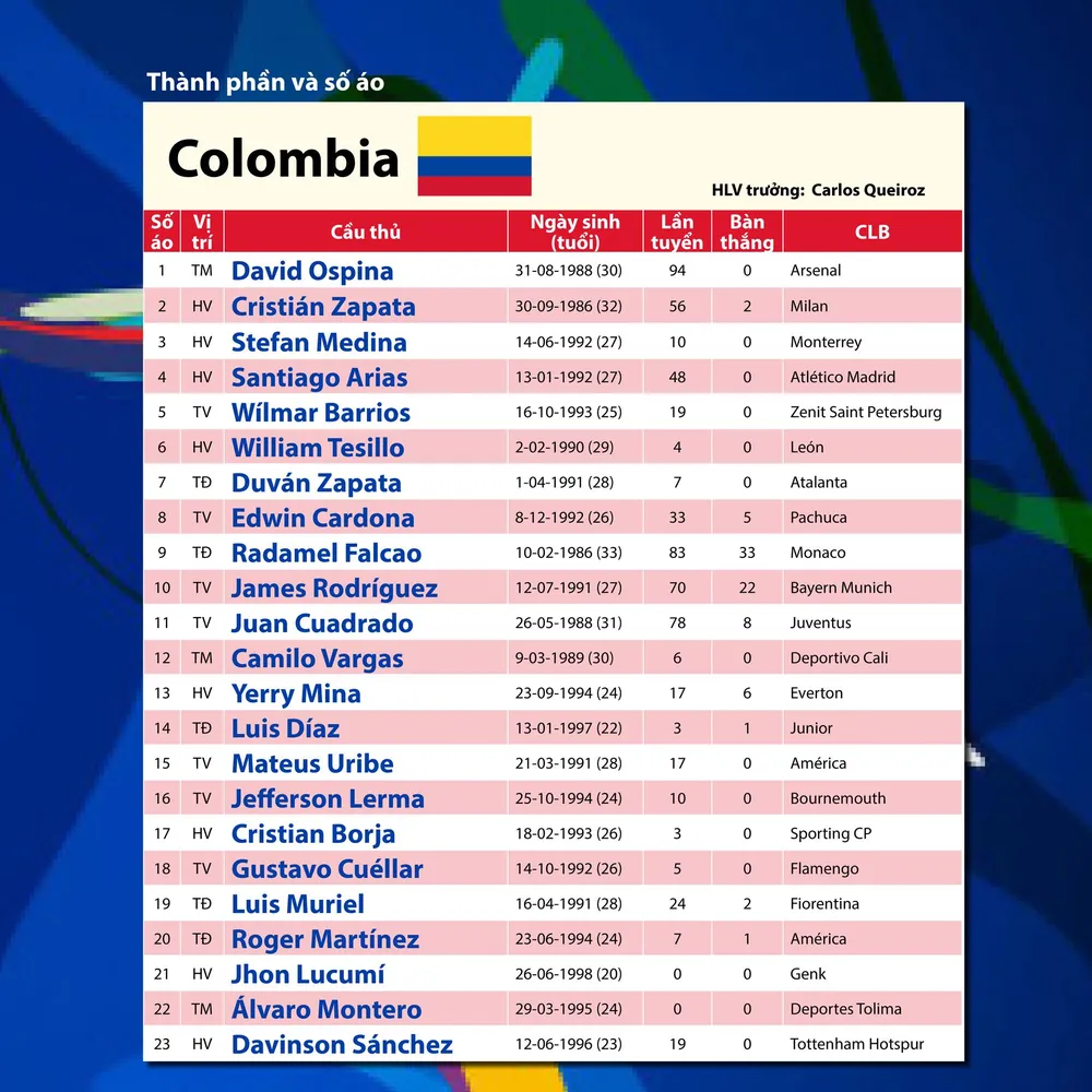 Với thành tích ấn tượng như vậy, tuyển Colombia ở Copa America 2019 được giới mộ điệu bóng đá nước nhà, thậm chí toàn thể người dân Colombia, đặt sự kỳ vọng không hề nhỏ. Cũng là vì, ngày 7-8 sắp tới đây sẽ là kỷ niệm 200 năm thành lập đất nước Colombia (ngày 7-8-1819, ngày 7-8-2019). Thậm chí, chính cả Tổng thống của Colombia, ông Ivan Duque, còn mời các tuyển thủ Los Cafeteros đến thăm Dinh Tổng thống ở Bogota hôm 4-6 để ủy lạo tinh thần “các người hùng của quốc gia”.