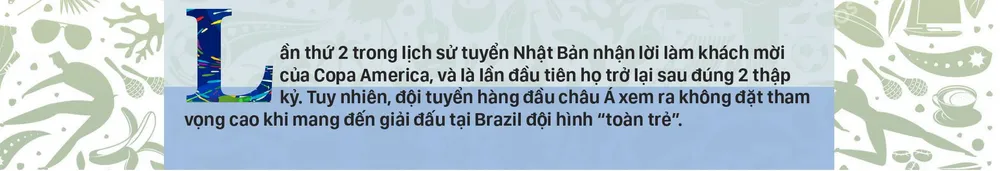 Lần thứ 2 trong lịch sử tuyển Nhật Bản nhận lời làm khách mời của Copa America, và là lần đầu tiên họ trở lại sau đúng 2 thập kỷ. Tuy nhiên, đội tuyển hàng đầu châu Á xem ra không đặt tham vọng cao khi mang đến giải đấu tại Brazil đội hình “toàn trẻ”.