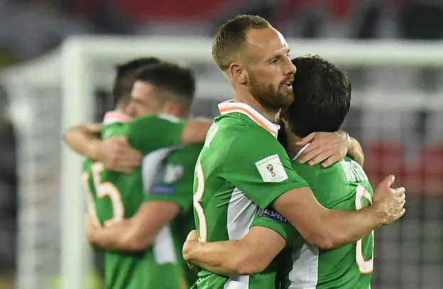 Các cầu thủ CH Ailen ăn mừng chiến thắng với ngôi đầu bảng.