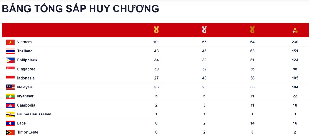 Đoàn thể thao Việt Nam tiếp tục thi đấu thành công trong ngày 17-5, nâng tổng số HCV vượt mốc 100 chiếc. Trong đó, đội tuyển điền kinh có thêm 3 HCV của Quách Thị Lan, Linh Na và Nguyễn Văn Lai. Các tuyển thủ vật Việt Nam giành đến 6 HCV trong ngày thi đấu ra quân tại SEA Games 31. Cờ vua và taekwondo cùng mang về được 2 HCV trong ngày thi đấu. Trong khi bắn súng, canoeing và bơi đều giành thêm 1 tấm “vàng mười” cho đoàn thể thao nước nhà. Đáng chú ý, bộ tứ Nguyễn Hữu Kim Sơn, Nguyễn Huy Hoàng, Hoàng Quý Phước, Trần Hưng Nguyên đã xuất sắc về nhất nội dung 4x200m tự do nam với thời gian 7 phút 16 giây 31 và tạo nên một kỷ lục SEA Games mới.