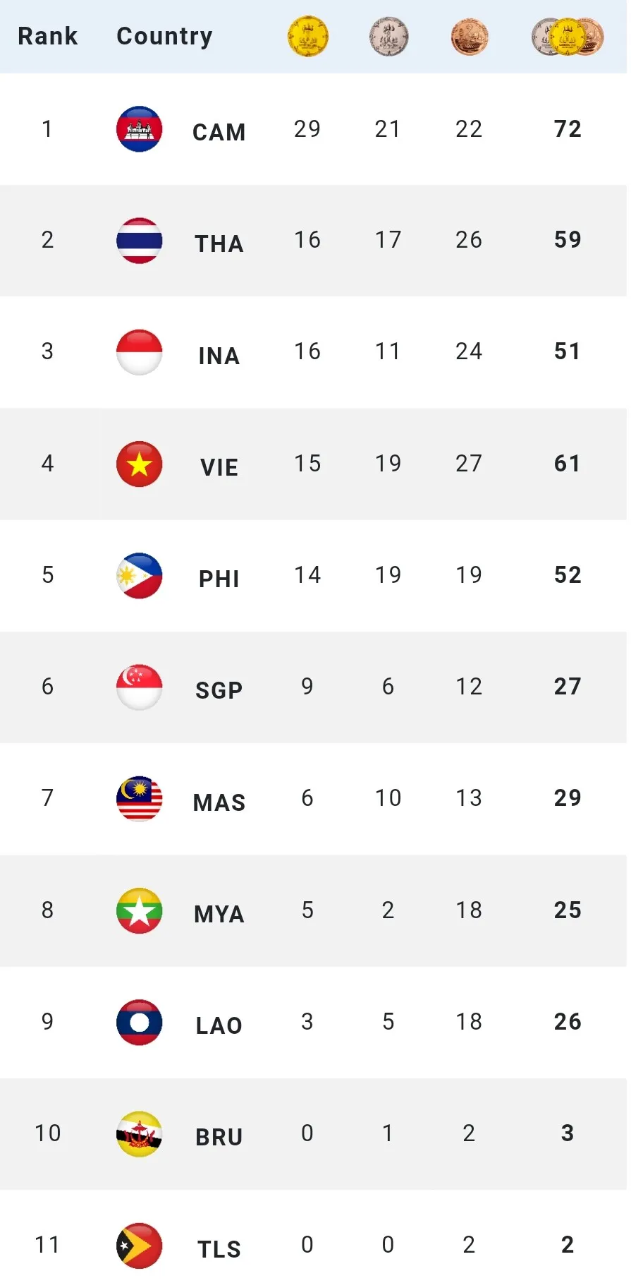 Tính đến thời điểm 23 giờ ngày 7-5, đoàn thể thao Việt Nam đã giành được 15 HCV và xếp vị trí thứ 4 trên bảng tổng sắp huy chương SEA Games 32.