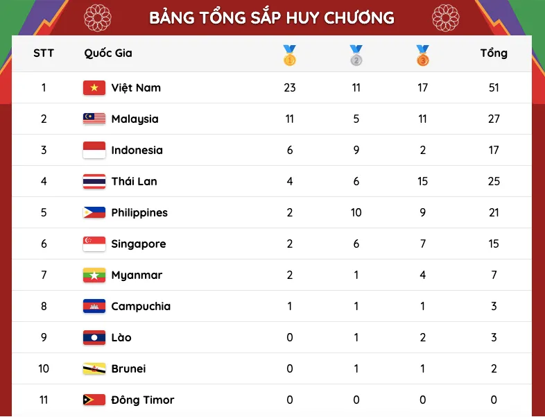 Môn đấu kiếm tại SEA Games 31 bắt đầu với ngày tranh tài đầu tiên 13-5 và kiếm thủ Vũ Thành An là người “mở hàng” HCV cho đội tuyển Việt Nam ở nội dung kiếm chém cá nhân nam. Đội tuyển thể dục dụng cụ Việt Nam xuất sắc vượt qua Philippines để giành tấm HCV ở nội dung đồng đội nam. Ngoài ra, đoàn thể thao Việt Nam còn giành được HCV ở các bộ môn thể hình, kurash, kickboxing.