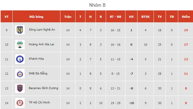 Bên cạnh cuộc đua giữa Hà Nội FC và CAHN FC tiếp tục gay cấn cùng sự áp sát của Viettel, nhóm cuối bảng tiếp tục quyết liệt khi CLB TPHCM về lại vị trí cuối bảng với 8 điểm.