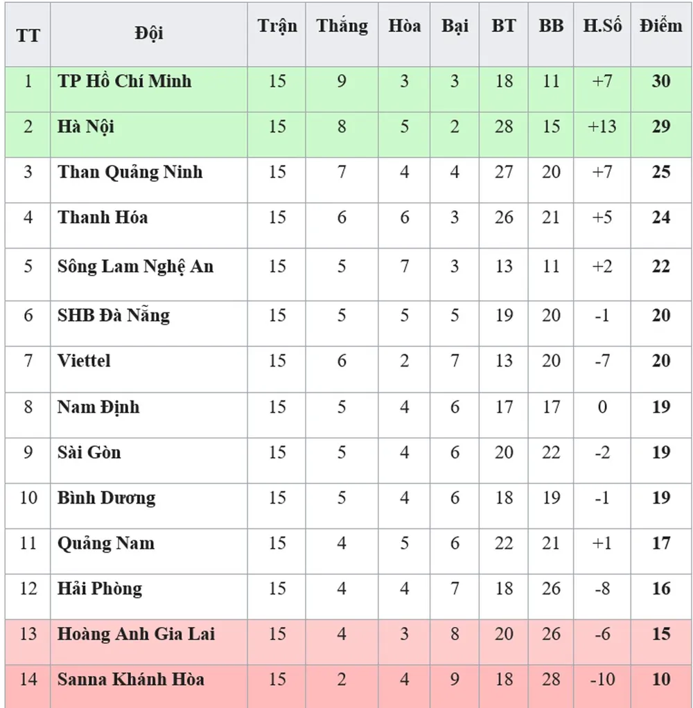 Trong khi đó, Than Quảng Ninh trở lại vị trí thứ 3 với 25 điểm. CLB Hà Nội để Sanna Khánh Hòa cầm hòa 2 - 2 nên không thể giành lại ngôi nhất bảng.