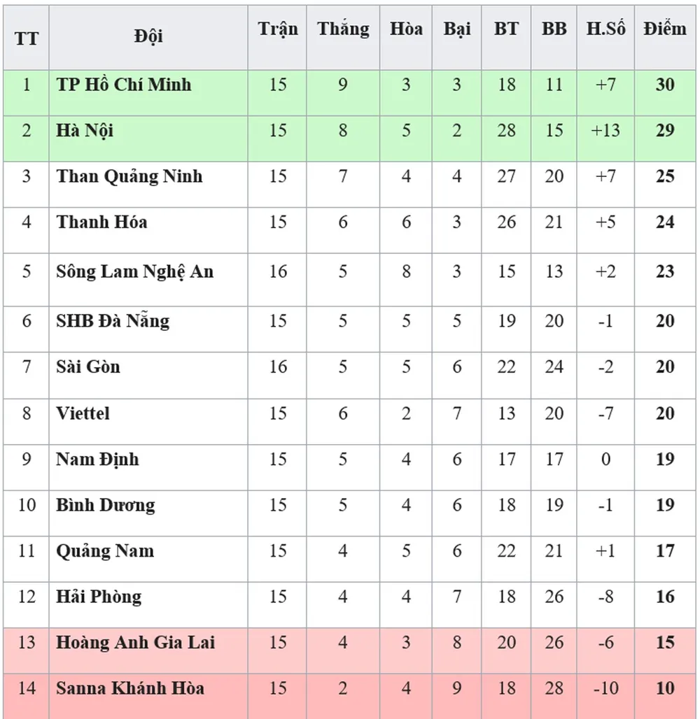 Trong khi đó, trận hòa này giúp CLB Sài Gòn từ vị trí thứ 9 tạm leo lên vị trí thứ 7 khi được 20 điểm.