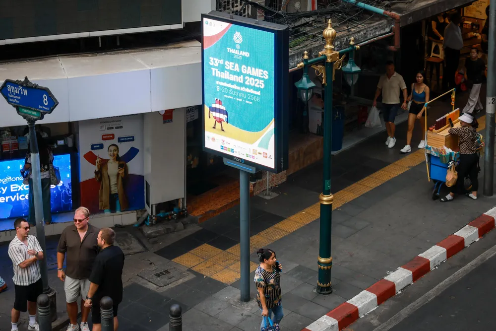 Một bảng điện tử quảng bá cho SEA Games lần thứ 33 tại trung tâm Bangkok vào ngày 4/12. Ảnh: ST/GAVIN FOO