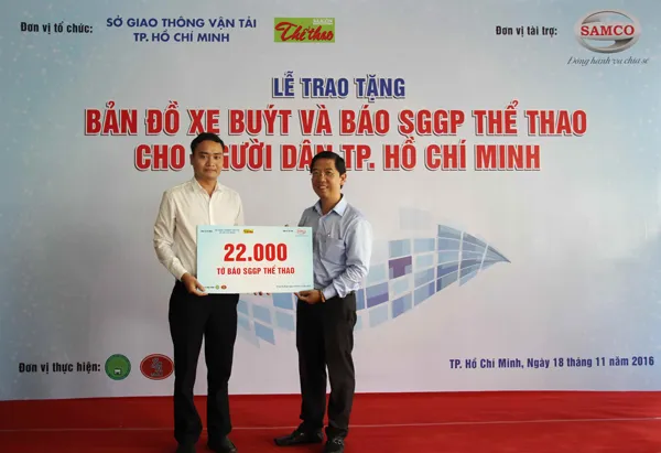Sáng 18-11, tại Bến xe miền Đông, Báo SGGP và Sở GTVT TPHCM tổ chức lễ tặng người dân 10.000 bản đồ xe buýt, kèm 22.000 tờ báo SGGP Thể Thao. Dưới sự tài trợ của Tổng Công ty Cơ khí Giao thông vận tải Sài Gòn (SAMCO), chương trình tặng bản đồ xe buýt và báo SGGP Thể Thao được tổ chức nhằm góp phần thực hiện thành công Nghị quyết Đại hội Đại biểu Đảng bộ TPHCM lần thứ X nhiệm kỳ 2015-2020, nhất là chương trình giảm ùn tắc và tai nạn giao thông, phát triển giao thông công cộng- 1 trong 7 chương trình đột phá của TPHCM.