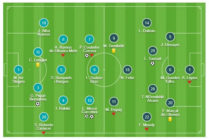 Barcelona: Messi 17' (pen), 78'; Coutinho 31'; Pique 81'; O.Dembele 86'