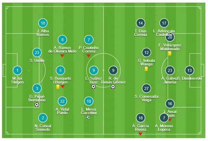 Barcelona: Pique 39', Messi 51' (pen), Suarez 81'