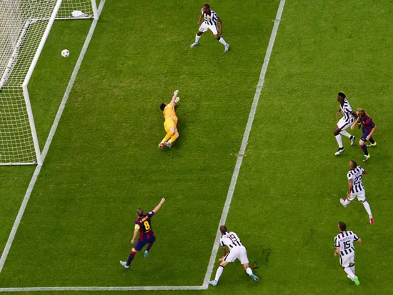 Bàn thua sớm và trước thế trận tấn công dồn dập của Barca khiến Juventus gặp rất nhiều khó khăn. Ở phút 13, thủ môn Buffon phải rất vất vả tung người cản phá cú sút ngay sát vòng cấm của Suarez.