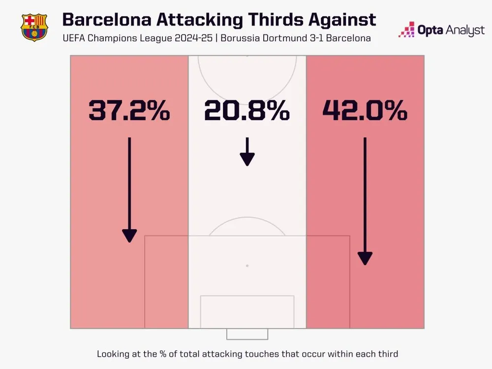 Barcelona đã gặp khó khăn trong việc kiềm tỏa Borussia Dortmund ở lượt về tứ kết, với đội bóng Đức thường xuyên tấn công vào cánh phải của họ thông qua Daniel Svensson và Karim Adeyemi trong chiến thắng 3-1. Tỷ số có thể – và có lẽ nên – tệ hơn cho Barça.