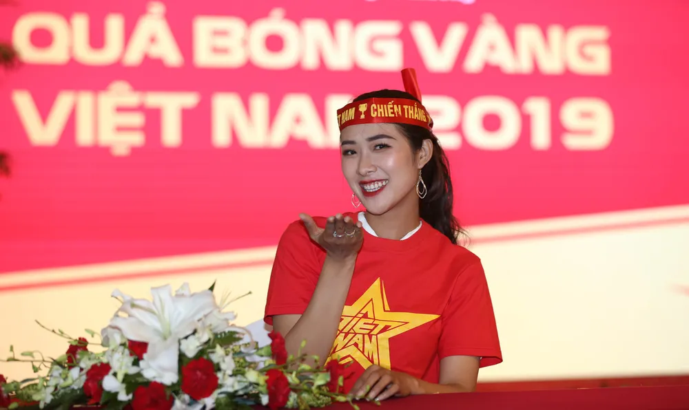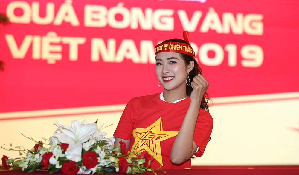 Để ủng hộ tuyển Việt Nam “đại chiến “ trước Thái Lan, Hoa hậu du lịch được yêu thích nhất Tường Vy tự trang bị áo cờ đỏ sao vàng, băng rôn với khẩu hiệu Việt Nam chiến thắng…để xuống đường cỗ vũ cho các học trò thầy Park giành chiến thắng trước Thái Lan trên nhà.