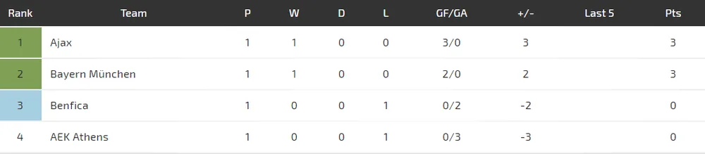 Bayern Munich cho thấy sức mạnh vượt trội ở bảng này khi thắng 2-0 ngay trên sân Benfica và họ có đủ quyết tâm đè bẹp Ajax Amsterdam để xoa dịu nỗi đau bại trận hôm cuối tuần.