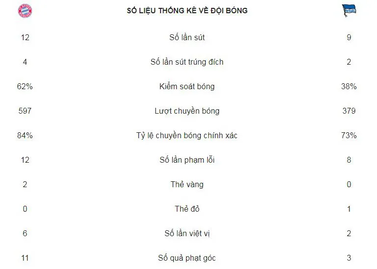 Được đánh giá cao hơn nhưng Bayern Munich đã có trận thắng đầy khó khăn trước Hertha Berlin. Chân sút Javi Martinez ghi bàn duy nhất từ pha bật cao đánh đầu đón quả phạt góc của James Rodriguez. Thắng 1-0, Bayern Munich cùng có 51 điểm với Dortmund ở ngôi đầu. Dortmund sẽ có trận gặp Leverkusen trên sân nhà vào tối hôm nay.