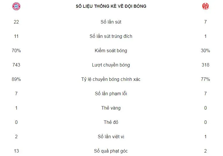 Huyền thoại Lewandowski khai màn cơn mưa bàn thắng ngay phút thứ 3, ngôi sao James Rodriguez ghi cú hat-trick đầu tiên trong màu áo Bayern Munich và Coman, Davies cũng khoe tài để ấn định chiến thắng 6-0 trước đối thủ Mainz 05. Thắng trận, Bayern Munich có cùng 60 điểm Dortmund nhưng dẫn đầu BXH nhờ hơn hiệu số và 2 đội sẽ gặp nhau vào ngày 6/4 tới.