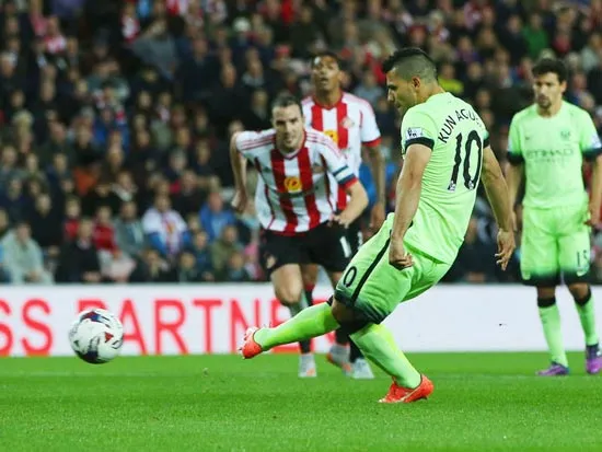 Trên chấm 11m, Sergio Aguero ghi bàn mở tỷ số 1 - 0 cho Man.City