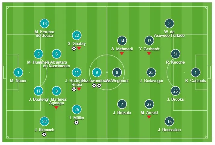 HLV Niko Kovac tung ra đội hình mạnh nhất quyết soán ngôi đầu bảng của Dortmund. Phút 34, Gnabry ghi bàn ở tỷ số, Lewandowski lập cú đúp, James Rodriguez, Muller và Kimmich đua tài vùi dập đối thủ bằng chiến thắng 6-0. Dù cùng 57 điểm nhưng Bayern Munich soán ngôi đầu của Dortmund do hơn hiệu số bàn thắng +35 trong khi Dortmund có hiệu số +33.