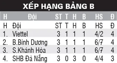 Ở lượt trận cuối vòng bảng diễn ra vào chiều qua, SHB Đà Nẵng đã nói lời chia tay với giải sau khi bị B.Bình Dương chia điểm với tỷ số 1-1. Trận hòa trên đã làm cho SHB Đà Nẵng kết thúc vòng loại bảng với 3 điểm nên đành xếp sau Viettel và B.Bình Dương trong cuộc đua vào vòng bán kết.