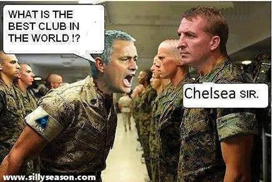 “Đội bóng nào là CLB hay nhất thế giới?”, “Dạ, Chelsea, thưa ngài”, đó là nội dung tấm ảnh chế binh nhì Brendan Rodgers im ru sau thất bại trước đại tá Jose Mourinho.