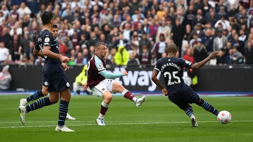 Trận đấu trên sân London Stadium diễn ra đầy bất ngờ khi đội chủ nhà liên tục vượt lên dẫn trước nhờ các đợt phản công sắc bén. West Ham vượt lên dẫn trước ở phút 24 nhờ Jarrod Bowen băng lên đón đường chuyền của Pablo Fornals để vượt qua Ederson và ghi bàn mở tỷ số.