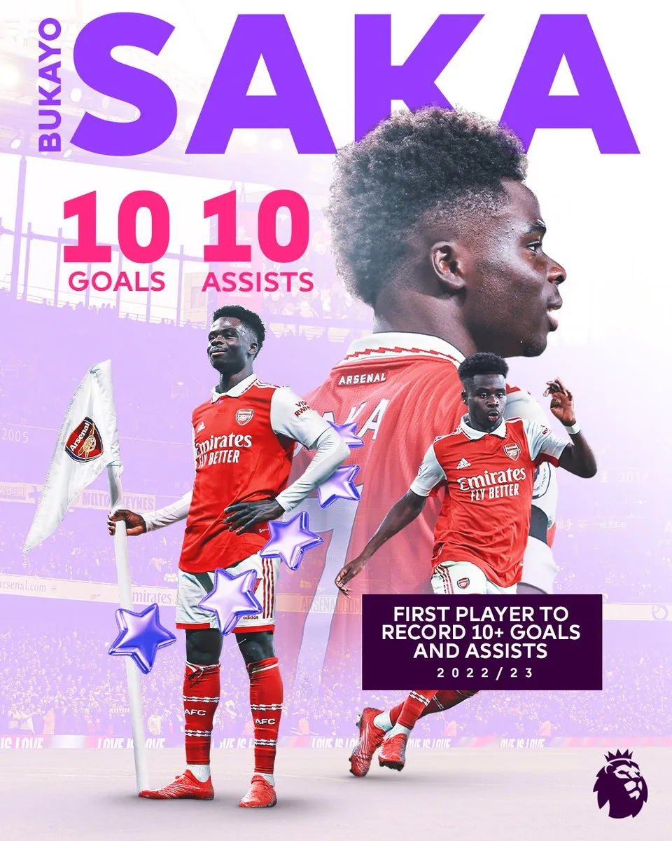 Bukayo Saka là cầu thủ Arsenal đầu tiên đạt được con số kép cho cả bàn thắng (12 bàn) và kiến tạo (10 bàn) trong một mùa giải Premier League kể từ Alexis Sanchez mùa 2016/2017.