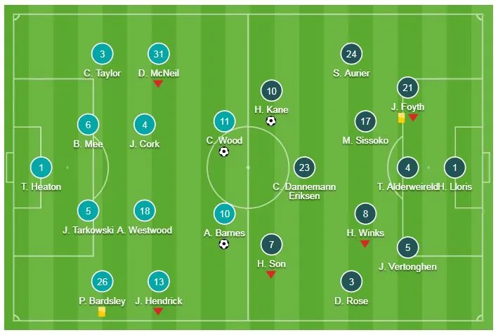 Tottenham quyết phủ đầu Burnley nhưng các chân sút Harry Kane, Eriksen đều "tịt ngòi", thậm chí họ còn bị Chris Wood đánh đầu tung lưới mở tỷ số. Ngôi sao Harry Kane gỡ hòa phút 65 nhưng Ashley Barnes kịp lập công, ấn định tỷ số 2-1. Thua, HLV Mauricio Pochettino (60 điểm) có nguy cơ bị Man City, Liverpool (cùng 65 điểm) vượt xa sau vòng 27.