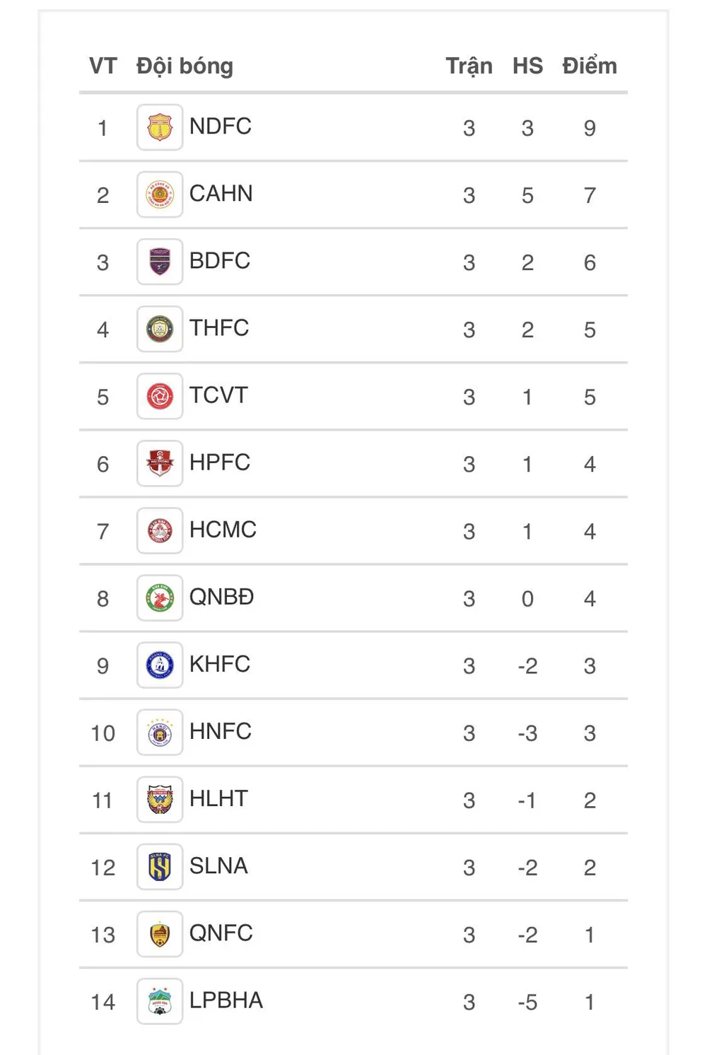 Vị trí cuối bảng tạm thuộc về HA.GL và Quảng Nam với cùng 1 điểm. Loạt trận của vòng 5 sẽ diễn ra vào ngày 2-12.