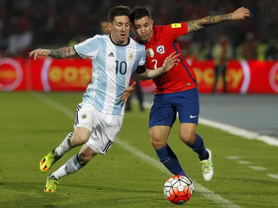 Argentina (trái) cần đánh bại Chile để vượt lên