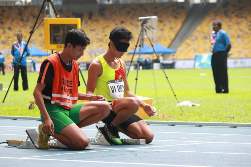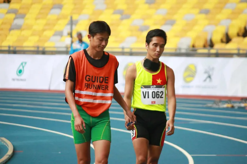 Những VĐV khiếm thị như Nguyễn Ngọc Hiệp luôn nhận được sự trợ giúp từ các Hướng dẫn viên (Guide Runner) khi bước vào cuộc tranh tài ASEAN Paragames 2017 đang diễn ra ở xứ sở Malaysia.