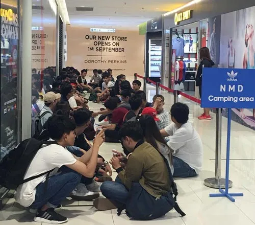9 giờ sáng 18-8, adidas tung ra bán đôi giày NMD trong phiên bản mới với mức giá khoảng 3,29 triệu đồng và số lượng rất hạn chế. Điều đó càng khiến tín đồ giày hiệu (Sneakerhead) quyết săn cho bằng được.