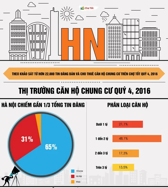 Thị trường căn hộ chung cư Hà Nội quý 4- 2016 đón nhận nhiều chuyển biến. Cầu Giấy- Hà Đông- Nam Từ Liêm dẫn đầu bảng khảo sát ở tổng số tin rao bán và cho thuê căn hộ chung cư trên Chợ Tốt quý này.