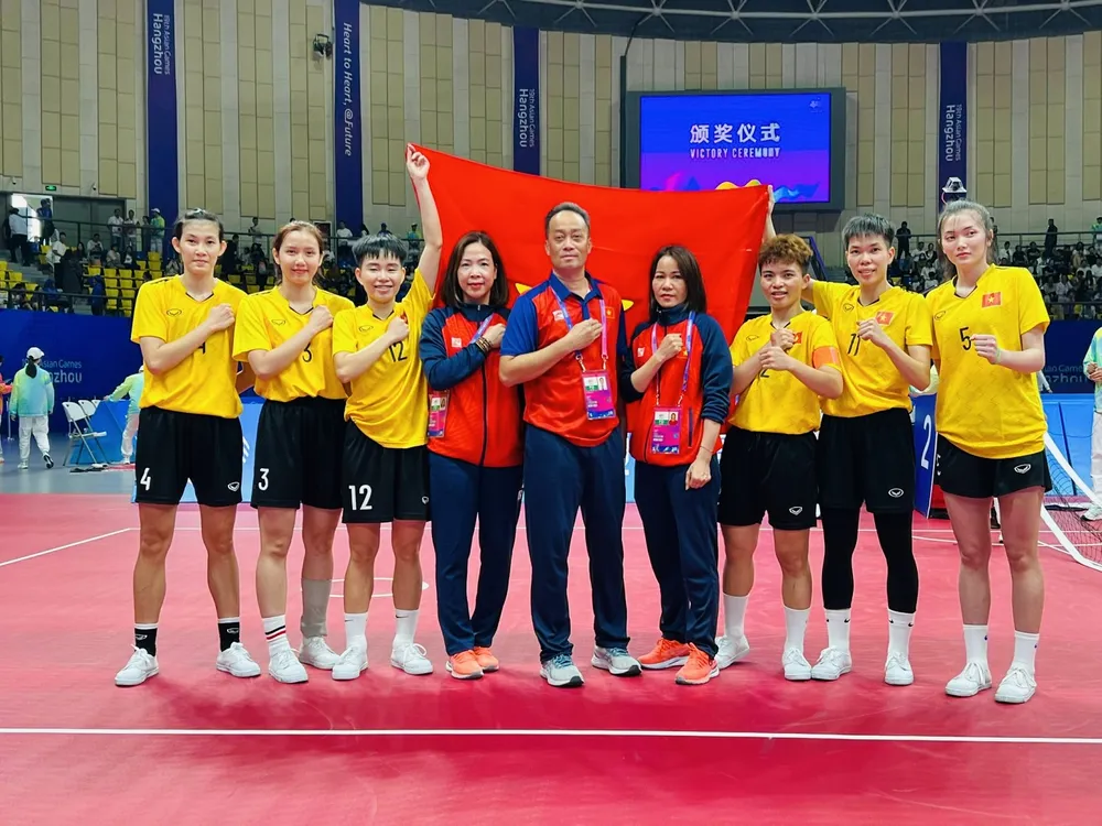 Đoàn thể thao Việt Nam đã có tấm HCV thứ hai tại ASIAD 19 lần này và thành tích tới từ các cô gái môn cầu mây nội dung đồng đội bốn người nữ.