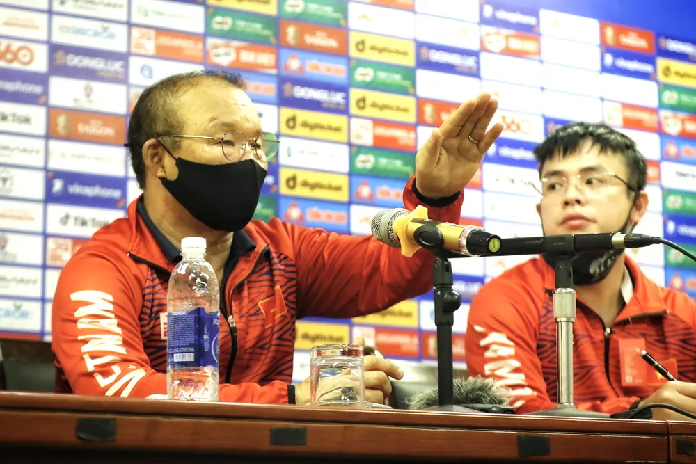 Mở đầu buổi họp báo, ông chia sẻ: “Người ta nói rằng kết quả quan trọng, nhưng quá trình quan trọng hơn. Tôi nghĩ rằng trận đầu tiên luôn khó khăn. Điều quan trọng cầu thủ đã nỗ lực hết sức, giành kết quả tốt. Tôi muốn gửi lời cảm ơn người hâm mộ đã luôn ủng hộ, bên cạnh đội tuyển. Trước mắt, toàn đội sẽ cố gắng những trận còn lại tại vòng bảng để giành kết quả tốt nhất”.