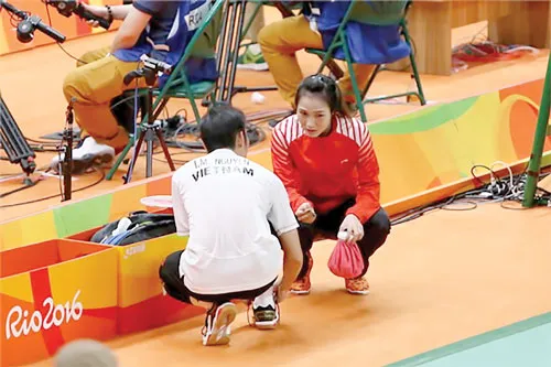 Người bạn đời Vũ Thị Trang (phải) luôn đồng hành Tiến Minh trong từng giải đấu.